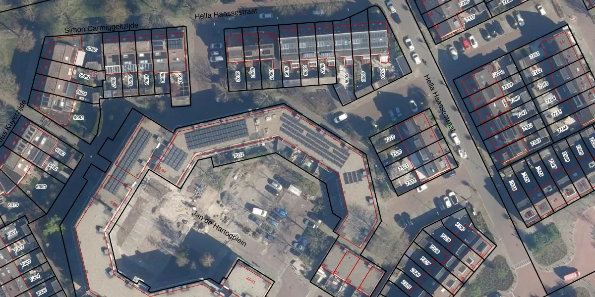 Het perceel waarop Jan de Hartogplein 61 staat heeft een oppervlakte van 3730 m². Dit is een zeer groot perceel. De perceeloppervlakte wordt geregistreerd door het Kadaster. Gedetailleerde informatie over de maten van dit perceel kunt u vinden in het rapport Kadastrale kaart met maatvoering van Jan de Hartogplein 61.
