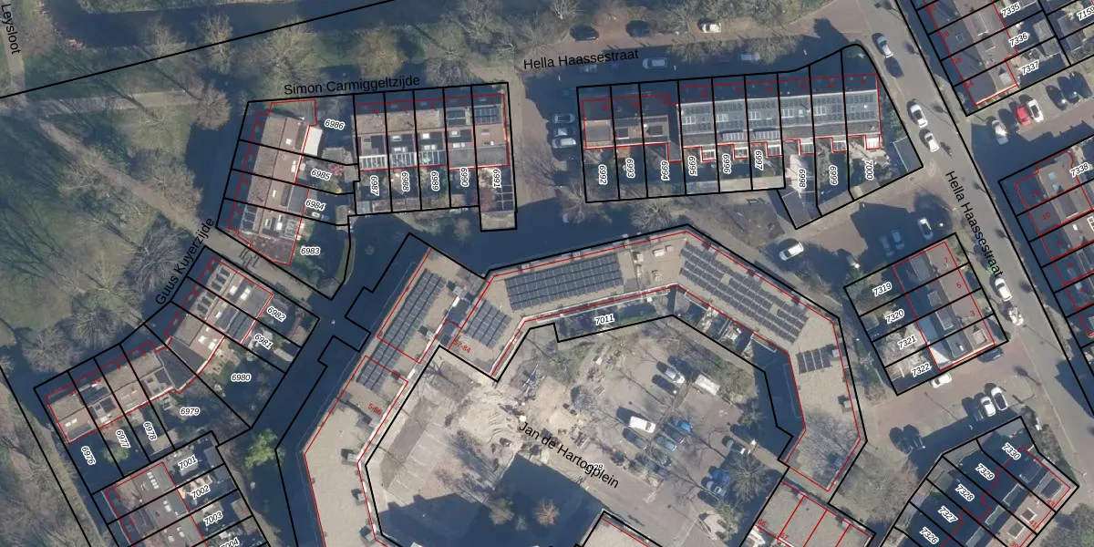 Het perceel waarop Jan de Hartogplein 70 staat heeft een oppervlakte van 3730 m². Dit is een zeer groot perceel. De perceeloppervlakte wordt geregistreerd door het Kadaster. Gedetailleerde informatie over de maten van dit perceel kunt u vinden in het rapport Kadastrale kaart met maatvoering van Jan de Hartogplein 70.