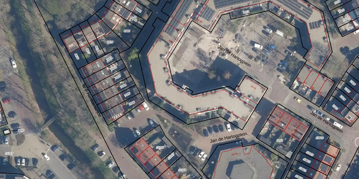 Jan de Hartogplein 9 is gelegen op kadastraal perceel LDD00A7011. Deze kadastrale aanduiding is uniek en wordt gebruikt door het Kadaster om eigendomsrechten en andere zakelijke rechten vast te leggen. Het perceel maakt onderdeel uit van de kadastrale gemeente Leiderdorp.
