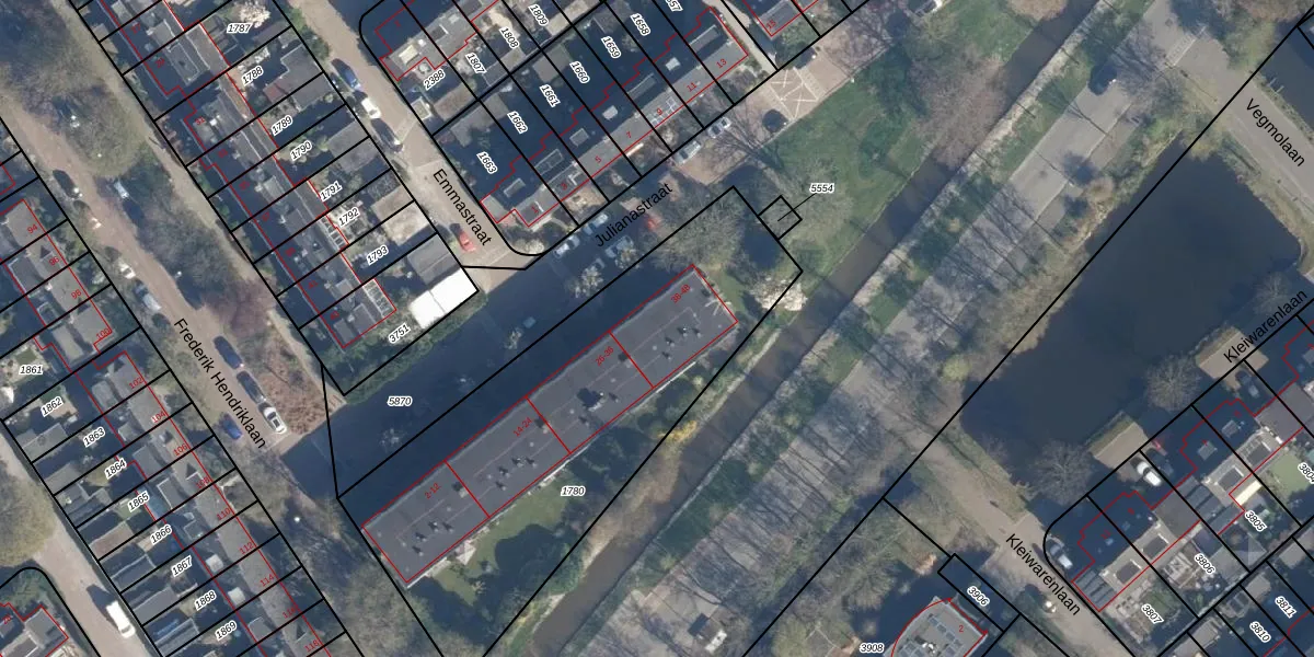 Julianastraat 40 is gelegen op kadastraal perceel LDD00B1780. Deze kadastrale aanduiding is uniek en wordt gebruikt door het Kadaster om eigendomsrechten en andere zakelijke rechten vast te leggen. Het perceel maakt onderdeel uit van de kadastrale gemeente Leiderdorp.