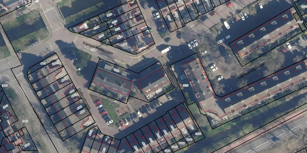 Het perceel waarop Kamperfoeliezoom 12 staat heeft een oppervlakte van 1020 m². Dit is een zeer groot perceel. De perceeloppervlakte wordt geregistreerd door het Kadaster. Gedetailleerde informatie over de maten van dit perceel kunt u vinden in het rapport Kadastrale kaart met maatvoering van Kamperfoeliezoom 12.
