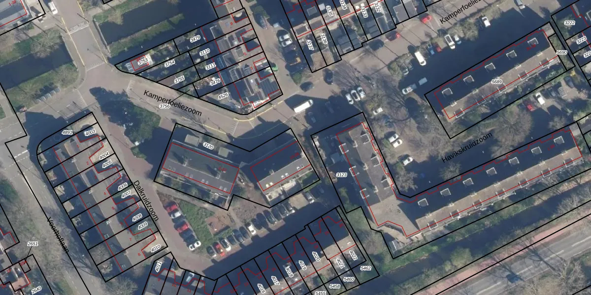 Het perceel waarop Kamperfoeliezoom 14 staat heeft een oppervlakte van 1020 m². Dit is een zeer groot perceel. De perceeloppervlakte wordt geregistreerd door het Kadaster. Gedetailleerde informatie over de maten van dit perceel kunt u vinden in het rapport Kadastrale kaart met maatvoering van Kamperfoeliezoom 14.