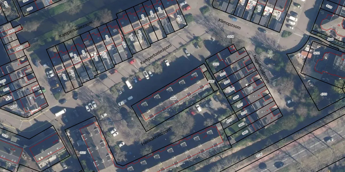 Het perceel waarop Kamperfoeliezoom 34 staat heeft een oppervlakte van 814 m². Dit is een groot perceel. De perceeloppervlakte wordt geregistreerd door het Kadaster. Gedetailleerde informatie over de maten van dit perceel kunt u vinden in het rapport Kadastrale kaart met maatvoering van Kamperfoeliezoom 34.