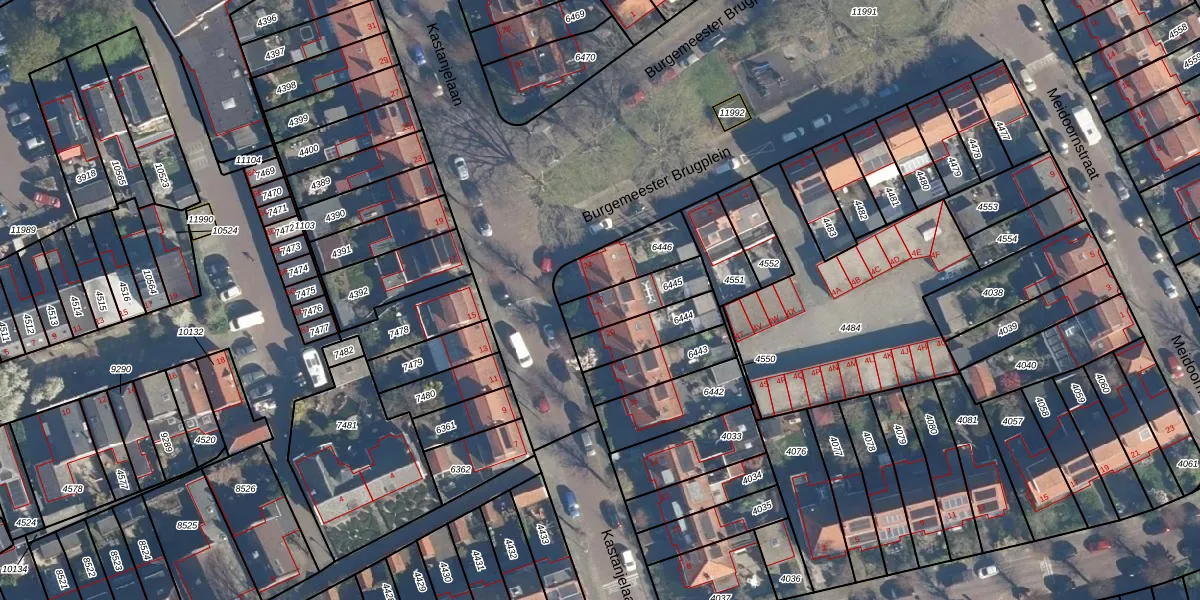 Gebruik de zoekbalk of klik op een perceel voor informatie over de adressen binnen dit perceel.