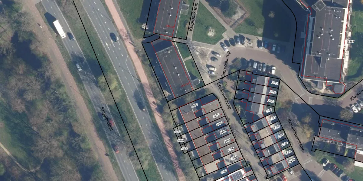 Het perceel waarop Klaprooskamp 119 staat heeft een oppervlakte van 2146 m². Dit is een zeer groot perceel. De perceeloppervlakte wordt geregistreerd door het Kadaster. Gedetailleerde informatie over de maten van dit perceel kunt u vinden in het rapport Kadastrale kaart met maatvoering van Klaprooskamp 119.