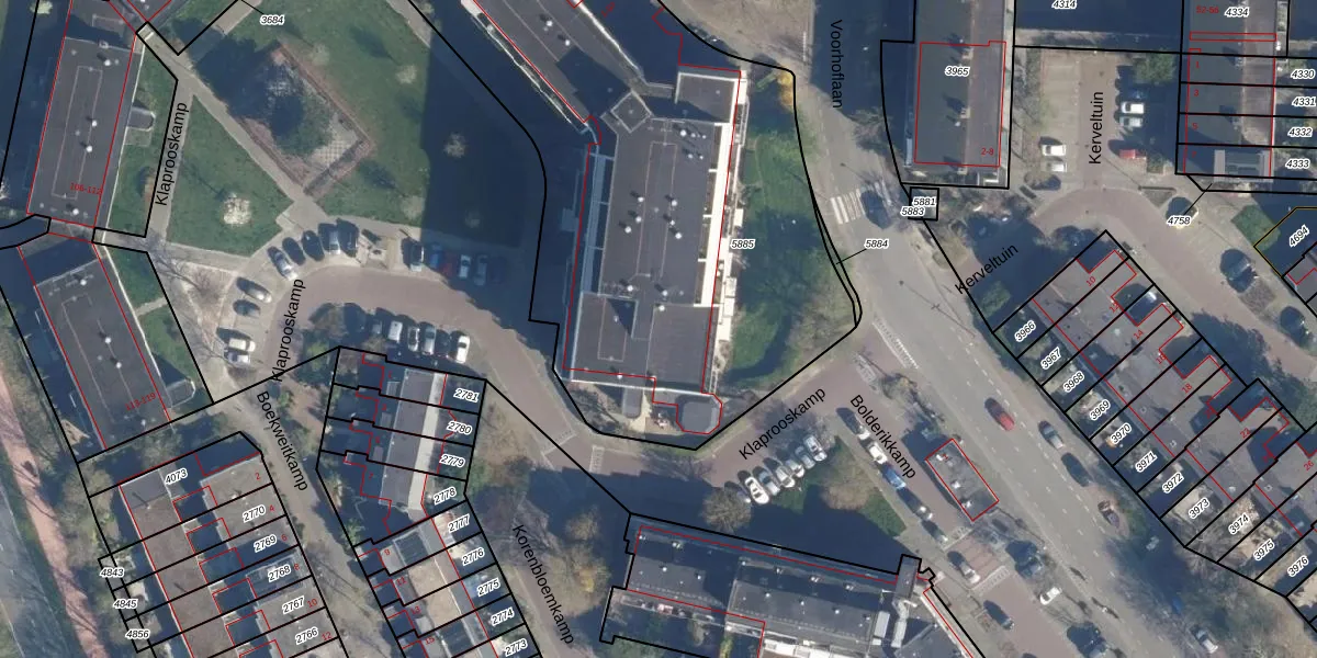 Het perceel waarop Klaprooskamp 31 staat heeft een oppervlakte van 3346 m². Dit is een zeer groot perceel. De perceeloppervlakte wordt geregistreerd door het Kadaster. Gedetailleerde informatie over de maten van dit perceel kunt u vinden in het rapport Kadastrale kaart met maatvoering van Klaprooskamp 31.