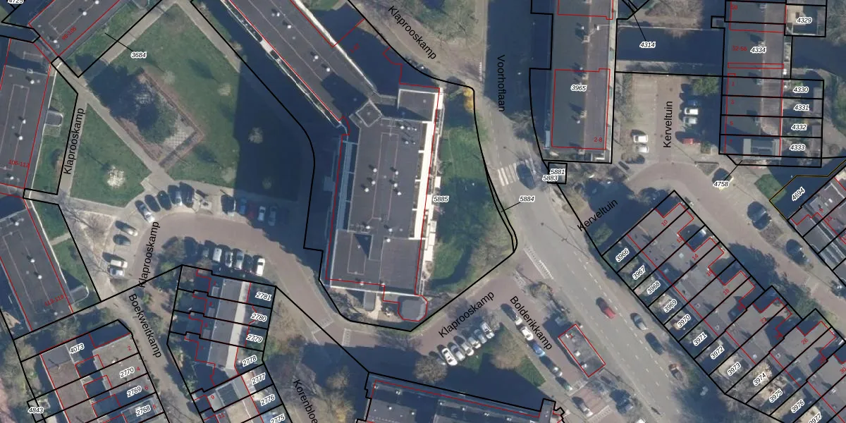 Klaprooskamp 5 is gelegen op kadastraal perceel LDD00B5885. Deze kadastrale aanduiding is uniek en wordt gebruikt door het Kadaster om eigendomsrechten en andere zakelijke rechten vast te leggen. Het perceel maakt onderdeel uit van de kadastrale gemeente Leiderdorp.
