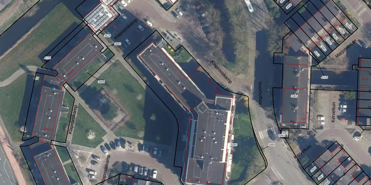 Het perceel waarop Klaprooskamp 58 staat heeft een oppervlakte van 3346 m². Dit is een zeer groot perceel. De perceeloppervlakte wordt geregistreerd door het Kadaster. Gedetailleerde informatie over de maten van dit perceel kunt u vinden in het rapport Kadastrale kaart met maatvoering van Klaprooskamp 58.