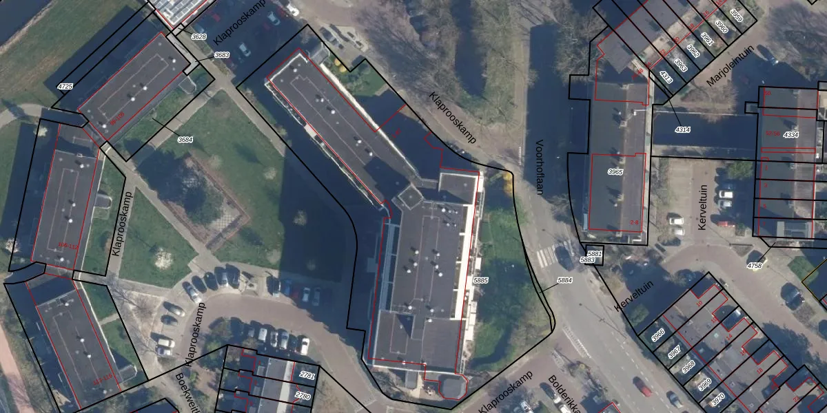 Het perceel waarop Klaprooskamp 74 staat heeft een oppervlakte van 3346 m². Dit is een zeer groot perceel. De perceeloppervlakte wordt geregistreerd door het Kadaster. Gedetailleerde informatie over de maten van dit perceel kunt u vinden in het rapport Kadastrale kaart met maatvoering van Klaprooskamp 74.