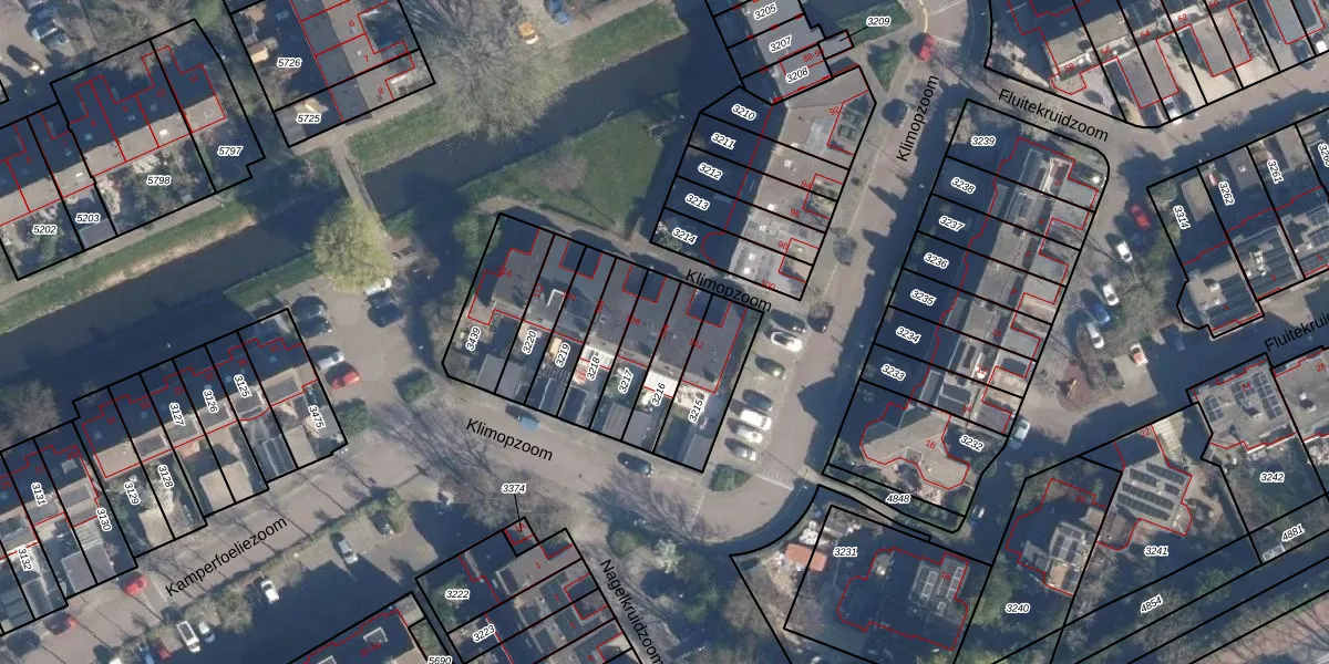 Gebruik de zoekbalk of klik op een perceel voor informatie over de adressen binnen dit perceel.