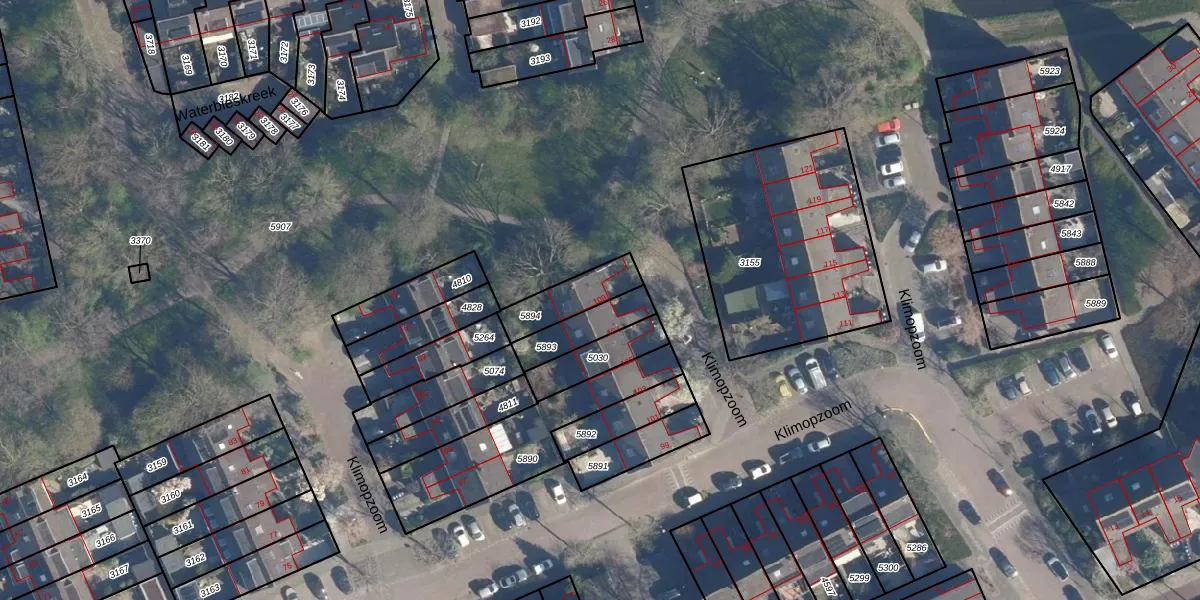 Klimopzoom 109 is gelegen op kadastraal perceel LDD00B5894. Deze kadastrale aanduiding is uniek en wordt gebruikt door het Kadaster om eigendomsrechten en andere zakelijke rechten vast te leggen. Het perceel maakt onderdeel uit van de kadastrale gemeente Leiderdorp.