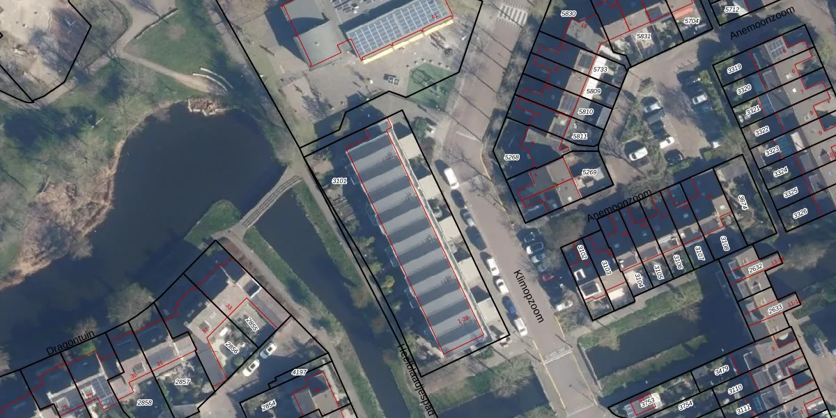 Klimopzoom 13 is gelegen op kadastraal perceel LDD00B3101. Deze kadastrale aanduiding is uniek en wordt gebruikt door het Kadaster om eigendomsrechten en andere zakelijke rechten vast te leggen. Het perceel maakt onderdeel uit van de kadastrale gemeente Leiderdorp.