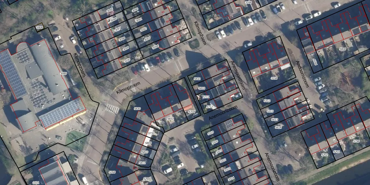Gebruik de zoekbalk of klik op een perceel voor informatie over de adressen binnen dit perceel.