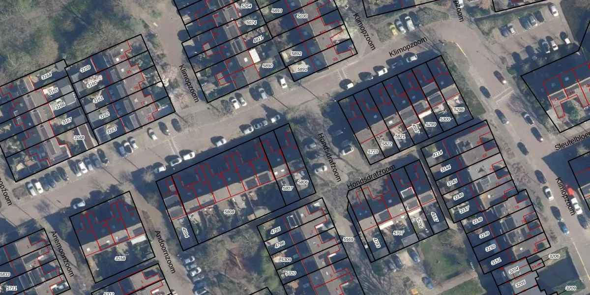 Klimopzoom 50 is gelegen op kadastraal perceel LDD00B5806. Deze kadastrale aanduiding is uniek en wordt gebruikt door het Kadaster om eigendomsrechten en andere zakelijke rechten vast te leggen. Het perceel maakt onderdeel uit van de kadastrale gemeente Leiderdorp.