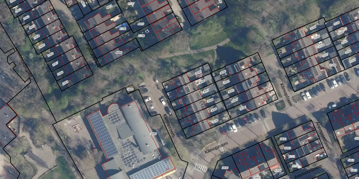 Gebruik de zoekbalk of klik op een perceel voor informatie over de adressen binnen dit perceel.