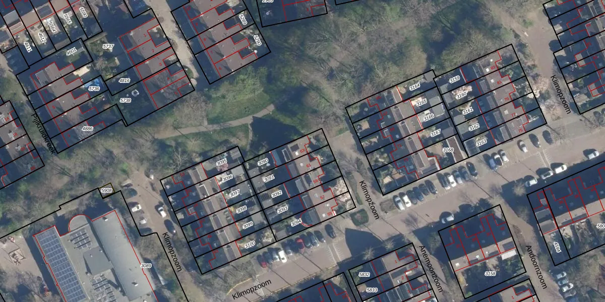 Het perceel waarop Klimopzoom 63 staat heeft een oppervlakte van 168 m². Dit is een middelgroot perceel. De perceeloppervlakte wordt geregistreerd door het Kadaster. Gedetailleerde informatie over de maten van dit perceel kunt u vinden in het rapport Kadastrale kaart met maatvoering van Klimopzoom 63.