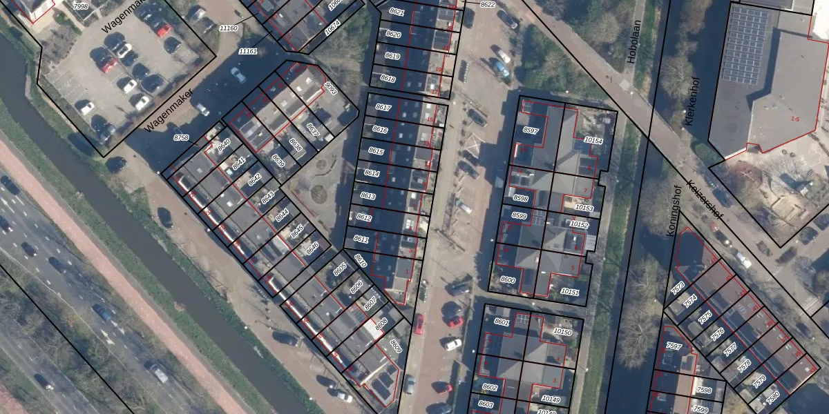 Gebruik de zoekbalk of klik op een perceel voor informatie over de adressen binnen dit perceel.
