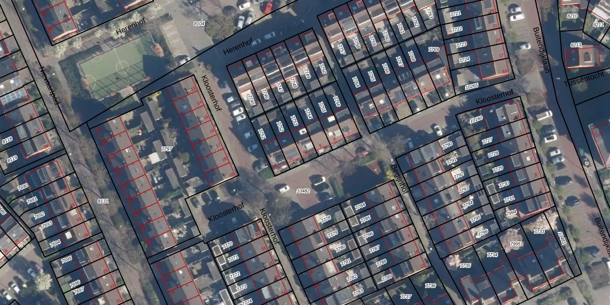 Het perceel waarop Kloosterhof 10 staat heeft een oppervlakte van 103 m². Dit is een middelgroot perceel. De perceeloppervlakte wordt geregistreerd door het Kadaster. Gedetailleerde informatie over de maten van dit perceel kunt u vinden in het rapport Kadastrale kaart met maatvoering van Kloosterhof 10.