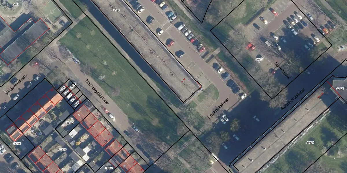Het perceel waarop Koekoekstraat 65 staat heeft een oppervlakte van 1700 m². Dit is een zeer groot perceel. De perceeloppervlakte wordt geregistreerd door het Kadaster. Gedetailleerde informatie over de maten van dit perceel kunt u vinden in het rapport Kadastrale kaart met maatvoering van Koekoekstraat 65.