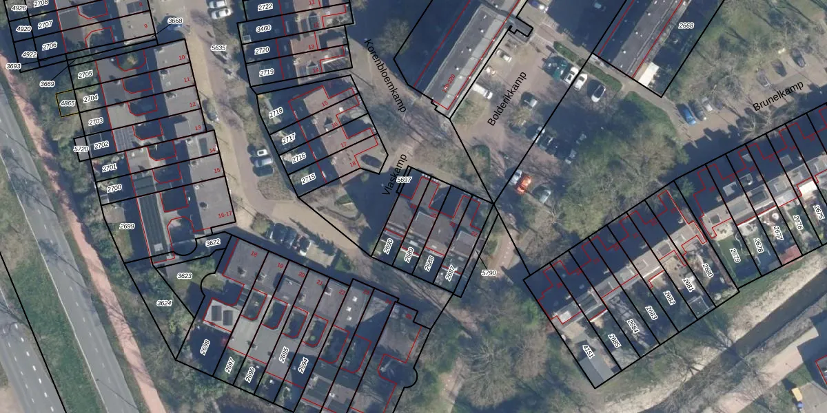 Gebruik de zoekbalk of klik op een perceel voor informatie over de adressen binnen dit perceel.