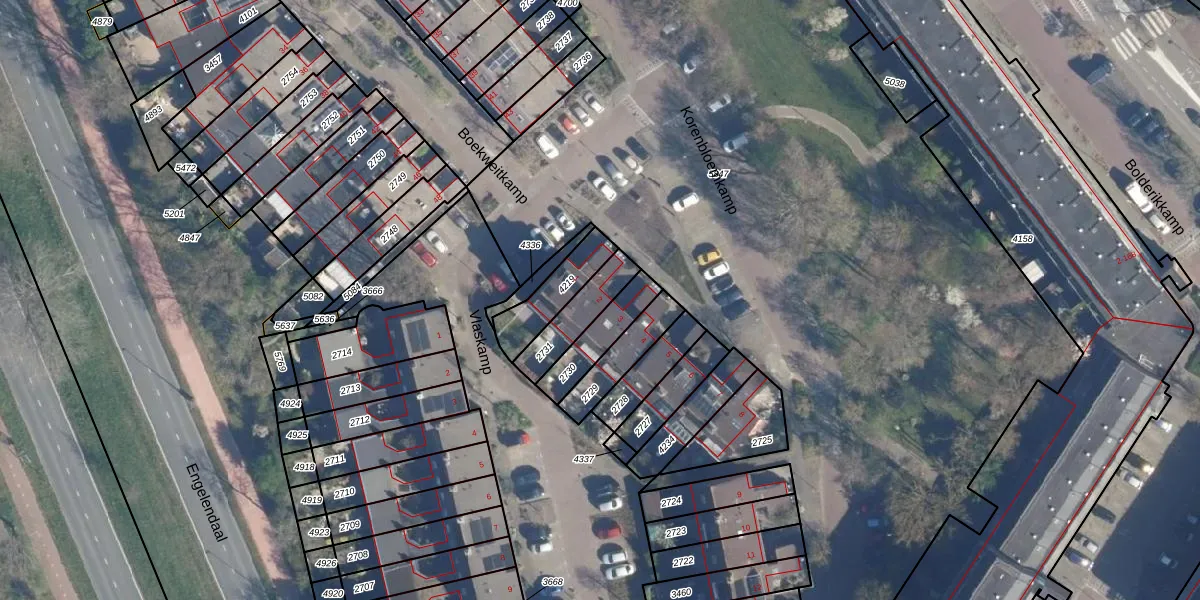 Gebruik de zoekbalk of klik op een perceel voor informatie over de adressen binnen dit perceel.