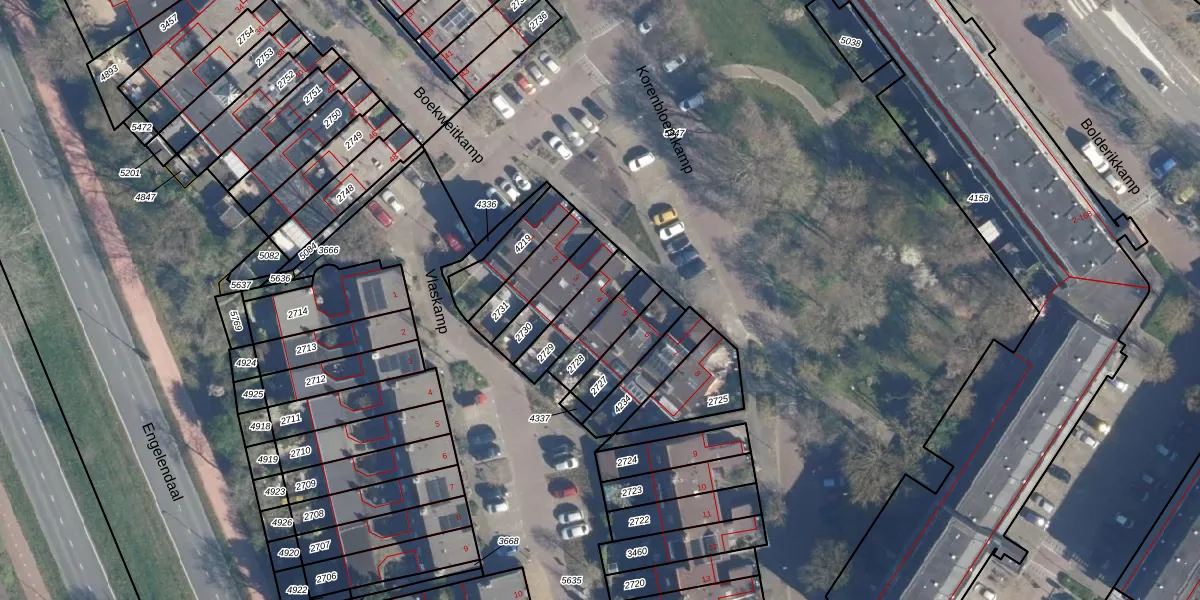 Korenbloemkamp 4 is gelegen op kadastraal perceel LDD00B2729. Deze kadastrale aanduiding is uniek en wordt gebruikt door het Kadaster om eigendomsrechten en andere zakelijke rechten vast te leggen. Het perceel maakt onderdeel uit van de kadastrale gemeente Leiderdorp.