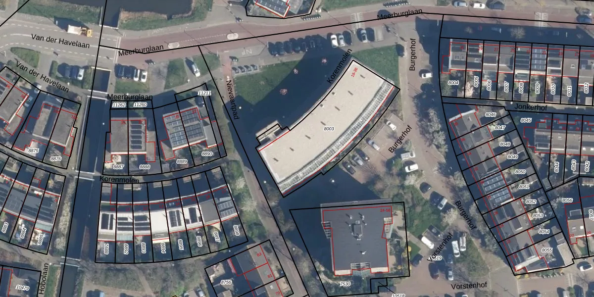 Het adres ligt op het perceel LDD00-A-8003, dat zich in de kadastrale gemeente Leiderdorp bevindt. Het perceel is kleiner dan gemiddeld in Leiderdorp. Het perceel is 950 m² groot, terwijl het gemiddelde ligt op 1289,87 m². De grootste perceeloppervlakte in de kadastrale gemeente is 43,4 ha. De kleinste oppervlakte bedraagt 0 m². Op het perceel liggen in totaal 19 adressen. In de Basisregistratie Kadaster (BRK) werden de grenzen van het perceel geregistreerd op 06-06-2006.