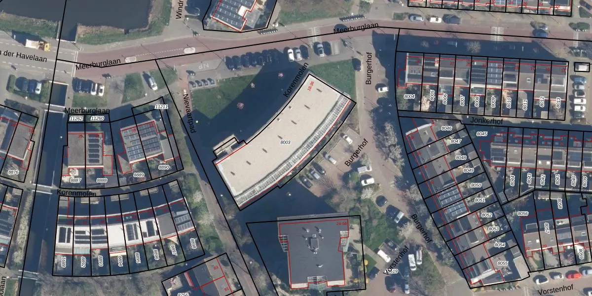 Het adres ligt op het perceel LDD00-A-8003, dat zich in de kadastrale gemeente Leiderdorp bevindt. Het perceel is kleiner dan gemiddeld in Leiderdorp. Het perceel is 950 m² groot, terwijl het gemiddelde ligt op 1289,87 m². Het kleinste perceel in de kadastrale gemeente is 0 m² groot. De grootste perceeloppervlakte is 43,4 ha. Op het perceel liggen in totaal 19 adressen. De laatste wijziging in het de Basisregistratie Kadaster (BRK) was op 06-06-2006.