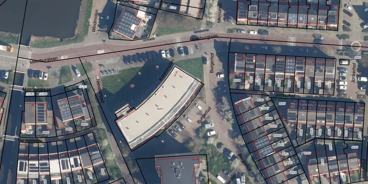 Het adres ligt op het perceel LDD00-A-8003, dat zich in de kadastrale gemeente Leiderdorp bevindt. Het perceel is kleiner dan gemiddeld in Leiderdorp. Het perceel is 950 m² groot, terwijl het gemiddelde ligt op 1289,87 m². Het kleinste perceel in de kadastrale gemeente is 0 m² groot. De grootste perceeloppervlakte is 43,4 ha. Op het perceel zijn 19 adressen aanwezig. De huidige grenzen van het perceel zijn digitaal in de Basisregistratie Kadaster (BRK) geregistreerd op 06-06-2006.