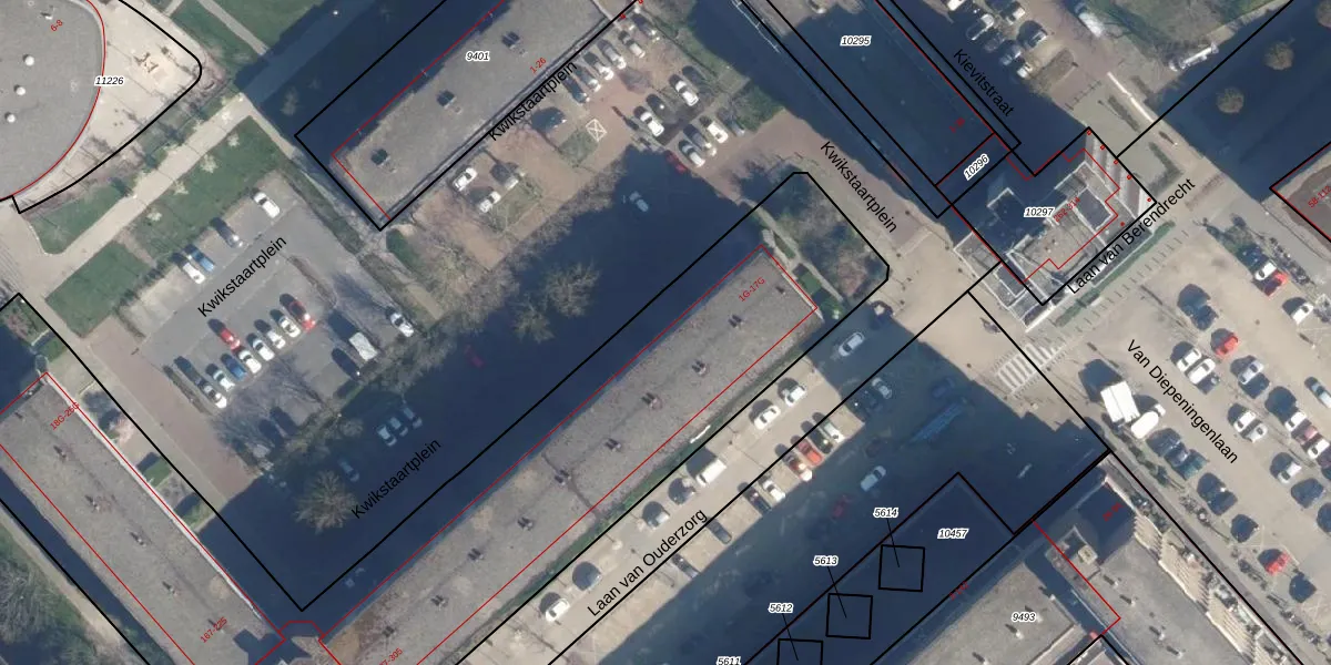 Het perceel waarop Kwikstaartplein 5-G staat heeft een oppervlakte van 4100 m². Dit is een zeer groot perceel. De perceeloppervlakte wordt geregistreerd door het Kadaster. Gedetailleerde informatie over de maten van dit perceel kunt u vinden in het rapport Kadastrale kaart met maatvoering van Kwikstaartplein 5-G.