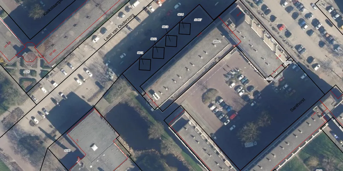 Laan van Ouderzorg 114 is gelegen op kadastraal perceel LDD00A9493. Deze kadastrale aanduiding is uniek en wordt gebruikt door het Kadaster om eigendomsrechten en andere zakelijke rechten vast te leggen. Het perceel maakt onderdeel uit van de kadastrale gemeente Leiderdorp.