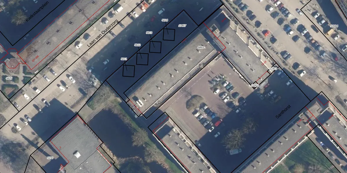 Laan van Ouderzorg 134 is gelegen op kadastraal perceel LDD00A9493. Deze kadastrale aanduiding is uniek en wordt gebruikt door het Kadaster om eigendomsrechten en andere zakelijke rechten vast te leggen. Het perceel maakt onderdeel uit van de kadastrale gemeente Leiderdorp.
