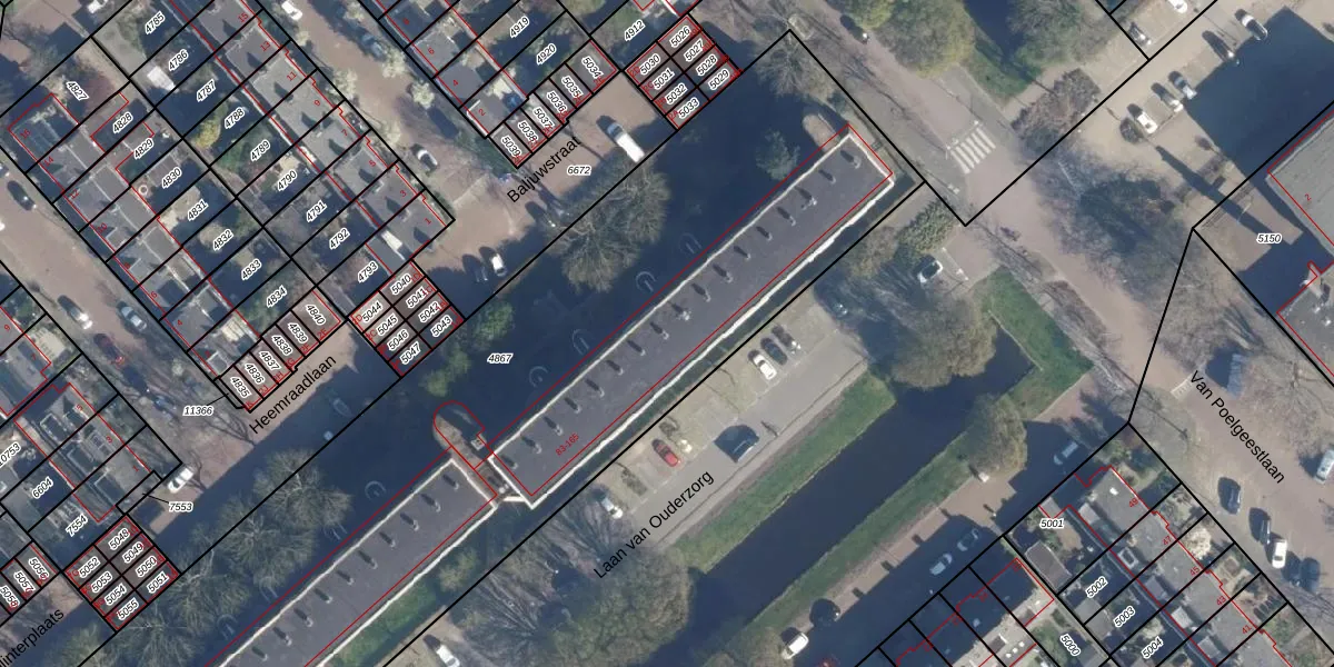 Het perceel waarop Laan van Ouderzorg 145 staat heeft een oppervlakte van 4915 m². Dit is een zeer groot perceel. De perceeloppervlakte wordt geregistreerd door het Kadaster. Gedetailleerde informatie over de maten van dit perceel kunt u vinden in het rapport Kadastrale kaart met maatvoering van Laan van Ouderzorg 145.