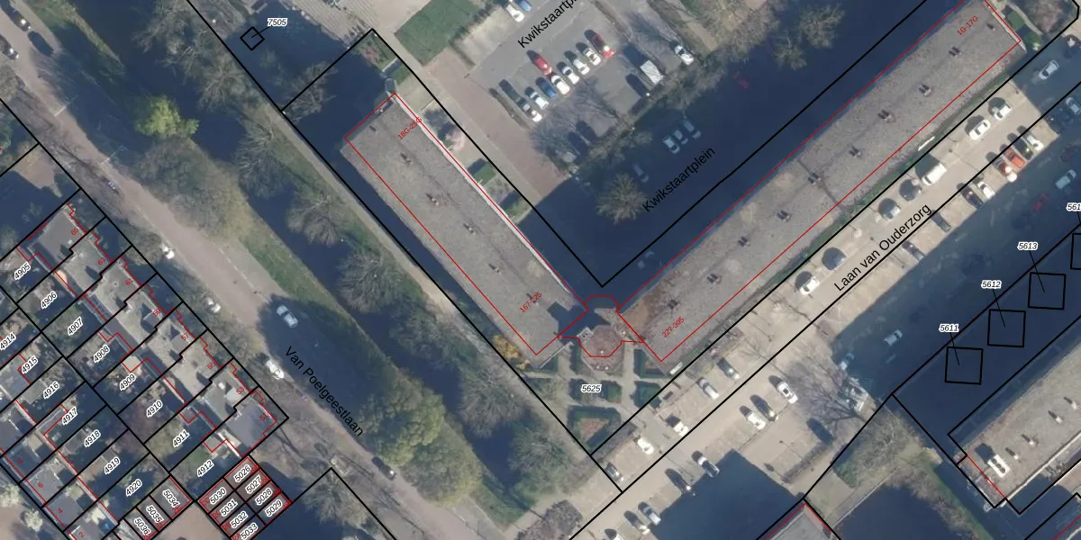 Laan van Ouderzorg 169 is gelegen op kadastraal perceel LDD00A5625. Deze kadastrale aanduiding is uniek en wordt gebruikt door het Kadaster om eigendomsrechten en andere zakelijke rechten vast te leggen. Het perceel maakt onderdeel uit van de kadastrale gemeente Leiderdorp.