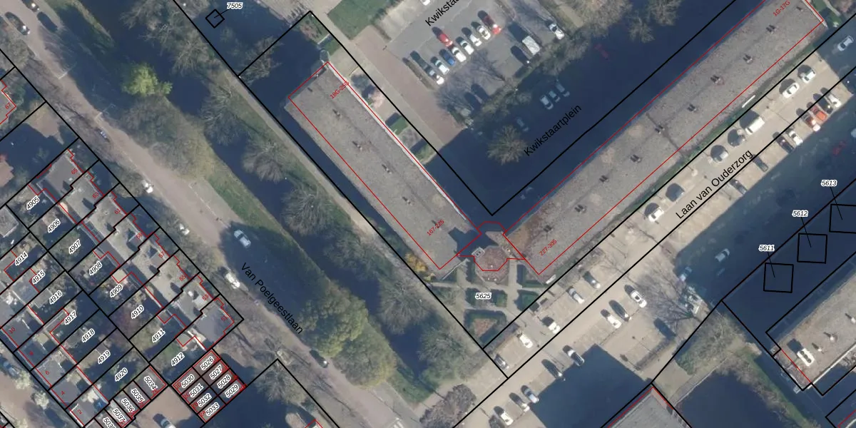 Laan van Ouderzorg 193 is gelegen op kadastraal perceel LDD00A5625. Deze kadastrale aanduiding is uniek en wordt gebruikt door het Kadaster om eigendomsrechten en andere zakelijke rechten vast te leggen. Het perceel maakt onderdeel uit van de kadastrale gemeente Leiderdorp.