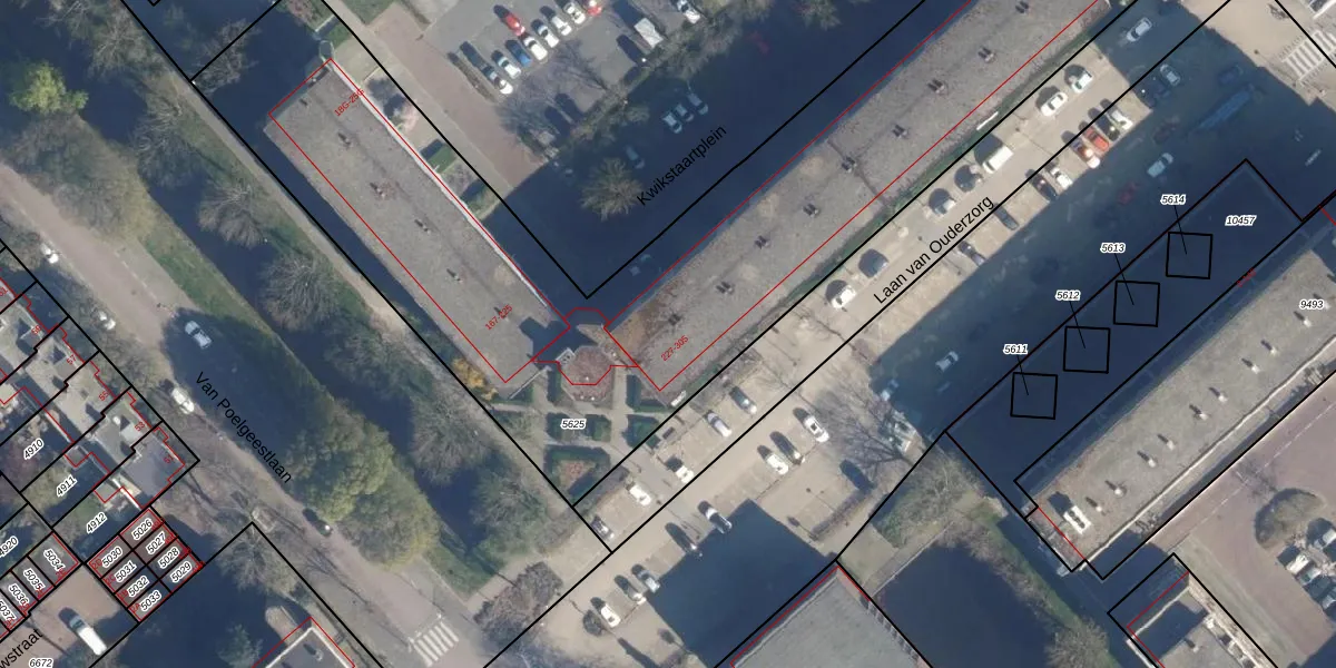 Laan van Ouderzorg 267 is gelegen op kadastraal perceel LDD00A5625. Deze kadastrale aanduiding is uniek en wordt gebruikt door het Kadaster om eigendomsrechten en andere zakelijke rechten vast te leggen. Het perceel maakt onderdeel uit van de kadastrale gemeente Leiderdorp.
