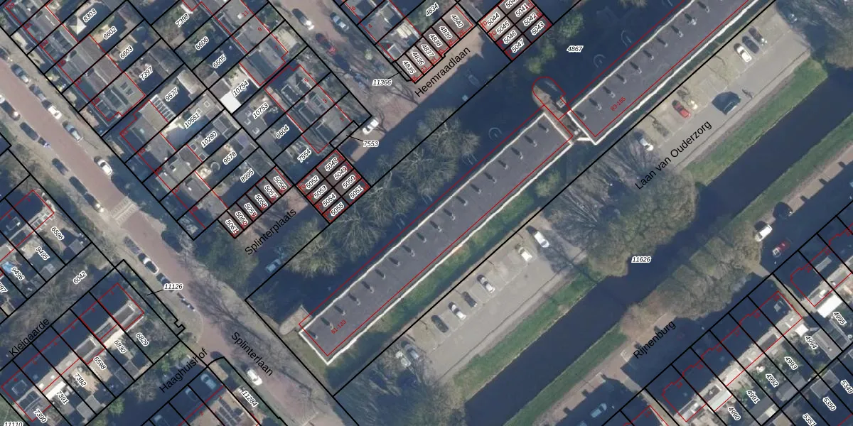 Het perceel waarop het adres ligt is LDD00-A-4867. De afkorting 'LDD00' staat voor kadastrale gemeente Leiderdorp. Het perceel is met 4915 m² relatief groot. Het gemiddelde ligt in de kadastrale gemeente Leiderdorp op 1289,87 m². Het kleinste perceel in de kadastrale gemeente is 0 m² groot. De grootste perceeloppervlakte is 43,4 ha. Op het perceel liggen in totaal 53 adressen. De huidige grenzen van het perceel zijn digitaal in de Basisregistratie Kadaster (BRK) geregistreerd op 22-05-2008.