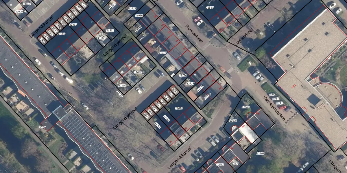 Het perceel waarop het adres ligt is LDD00-A-6720. De afkorting 'LDD00' staat voor kadastrale gemeente Leiderdorp. De gemiddelde perceelgrootte in Leiderdorp is 1289,87 m². Dit perceel is kleiner: de perceeloppervlakte bedraagt 20 m². De grootste perceeloppervlakte in de kadastrale gemeente is 43,4 ha. De kleinste oppervlakte bedraagt 0 m². Dit is het enige adres dat aanwezig is op het perceel. In de Basisregistratie Kadaster (BRK) werden de grenzen van het perceel geregistreerd op 01-02-2002.