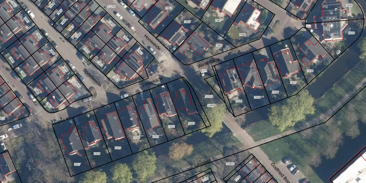 Lentekade 19 is gelegen op kadastraal perceel LDD00A7933. Deze kadastrale aanduiding is uniek en wordt gebruikt door het Kadaster om eigendomsrechten en andere zakelijke rechten vast te leggen. Het perceel maakt onderdeel uit van de kadastrale gemeente Leiderdorp.