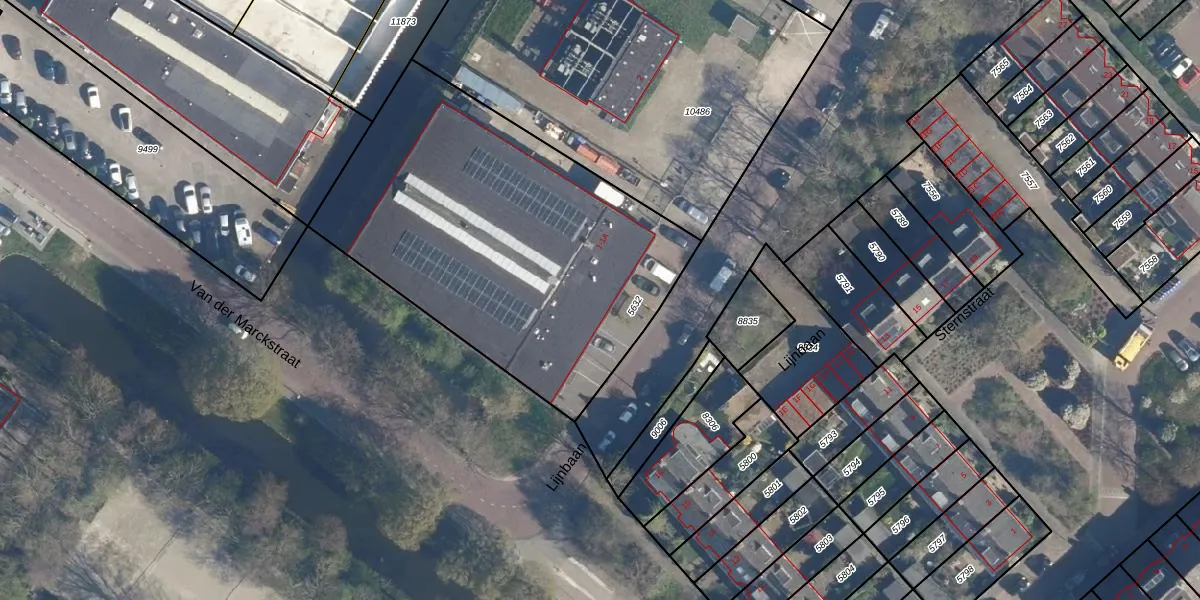 Het perceel waarop Lijnbaan 1-A staat heeft een oppervlakte van 2030 m². Dit is een zeer groot perceel. De perceeloppervlakte wordt geregistreerd door het Kadaster. Gedetailleerde informatie over de maten van dit perceel kunt u vinden in het rapport Kadastrale kaart met maatvoering van Lijnbaan 1-A.