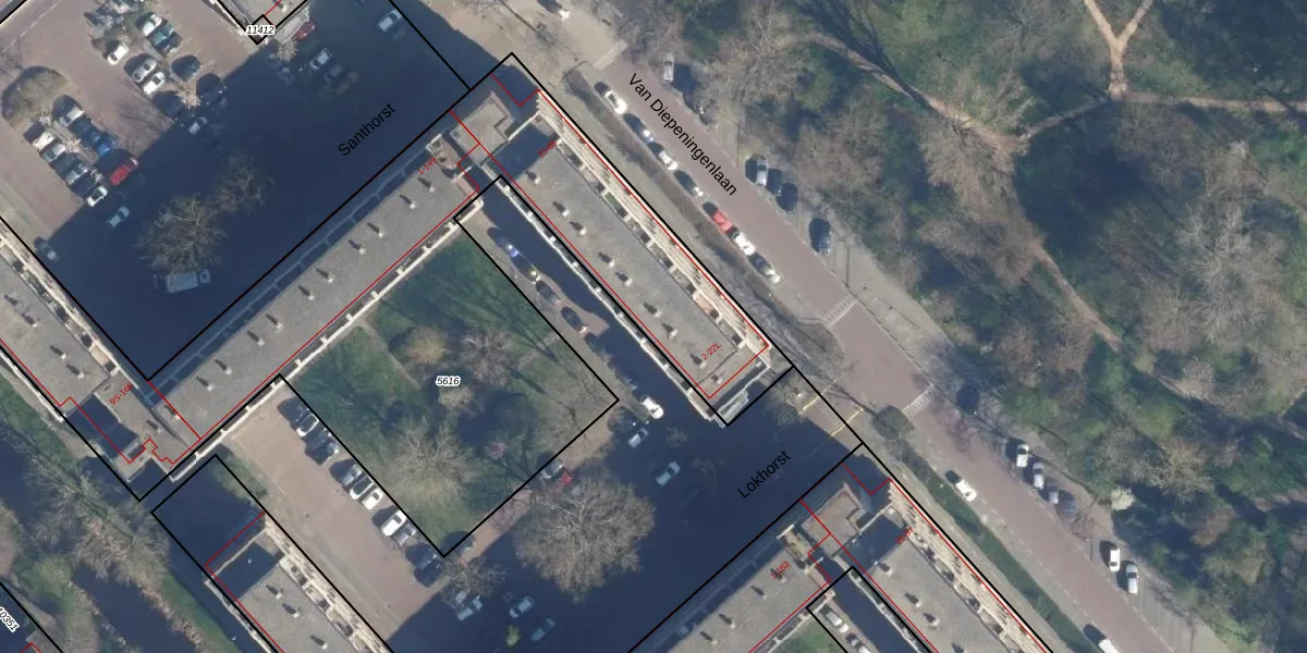 Het perceel waarop het adres ligt is LDD00-A-5616. De afkorting 'LDD00' staat voor kadastrale gemeente Leiderdorp. Het perceel is met 3876 m² relatief groot. Het gemiddelde ligt in de kadastrale gemeente Leiderdorp op 1289,87 m². Het kleinste perceel in de kadastrale gemeente is 0 m² groot. De grootste perceeloppervlakte is 43,4 ha. Er zijn 110 adressen aanwezig op het perceel. De huidige grenzen van het perceel zijn digitaal in de Basisregistratie Kadaster (BRK) geregistreerd op 03-05-2007.