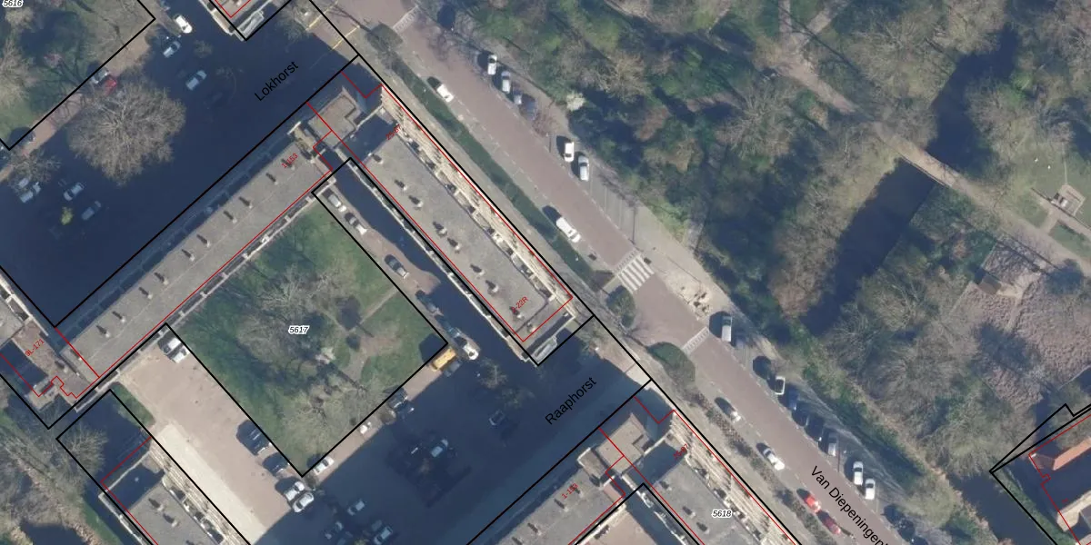 Het perceel waarop het adres ligt is LDD00-A-5617. De afkorting 'LDD00' staat voor kadastrale gemeente Leiderdorp. De oppervlakte van het perceel is 4053 m². Dat is groter dan gemiddeld in Leiderdorp, waar de gemiddelde perceeloppervlakte op 1289,87 m² ligt. Het grootste perceel in de kadastrale gemeente is 43,4 ha. Het kleinste perceel heeft een oppervlakte van 0 m². Op het perceel liggen in totaal 114 adressen. De laatste wijziging in het de Basisregistratie Kadaster (BRK) was op 03-05-2007.