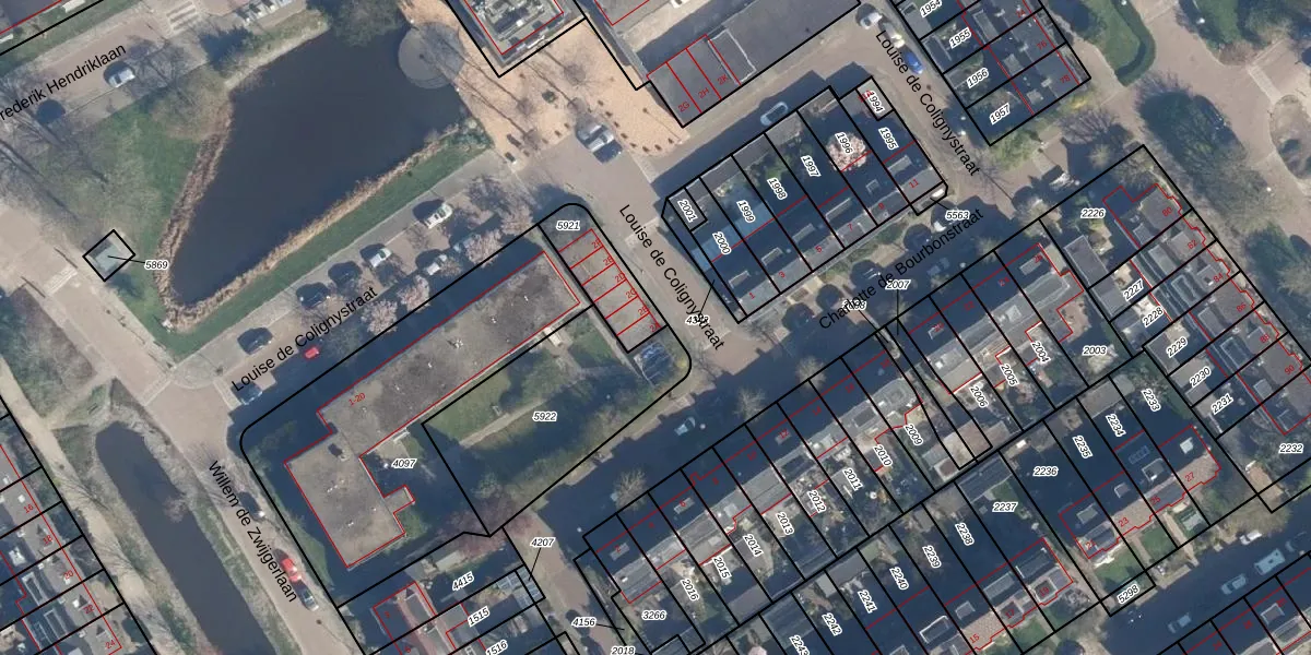 Louise de Colignystraat 2-A is gelegen op kadastraal perceel LDD00B5921. Deze kadastrale aanduiding is uniek en wordt gebruikt door het Kadaster om eigendomsrechten en andere zakelijke rechten vast te leggen. Het perceel maakt onderdeel uit van de kadastrale gemeente Leiderdorp.