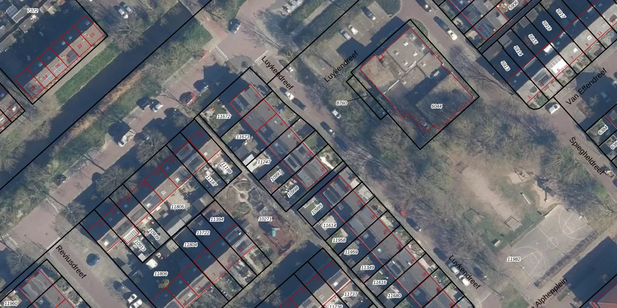 Luykendreef 10 is gelegen op kadastraal perceel LDD00A10997. Deze kadastrale aanduiding is uniek en wordt gebruikt door het Kadaster om eigendomsrechten en andere zakelijke rechten vast te leggen. Het perceel maakt onderdeel uit van de kadastrale gemeente Leiderdorp.