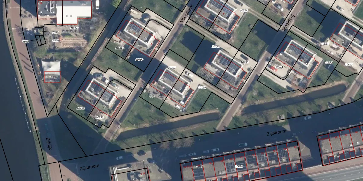 Gebruik de zoekbalk of klik op een perceel voor informatie over de adressen binnen dit perceel.