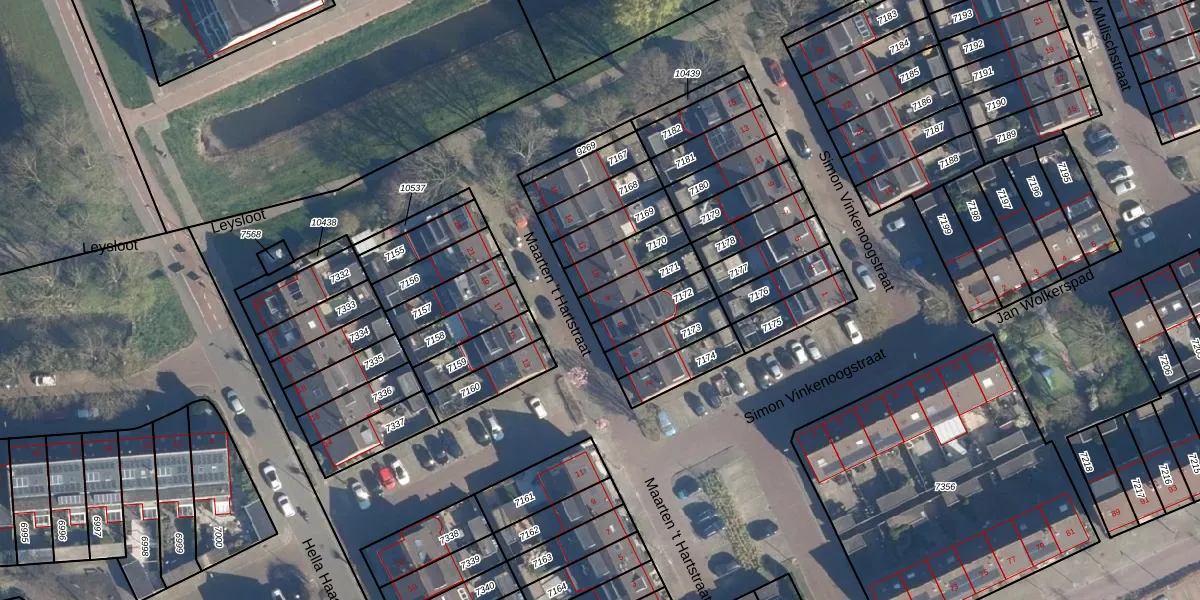 Maarten 't Hartstraat 8 is gelegen op kadastraal perceel LDD00A7171. Deze kadastrale aanduiding is uniek en wordt gebruikt door het Kadaster om eigendomsrechten en andere zakelijke rechten vast te leggen. Het perceel maakt onderdeel uit van de kadastrale gemeente Leiderdorp.