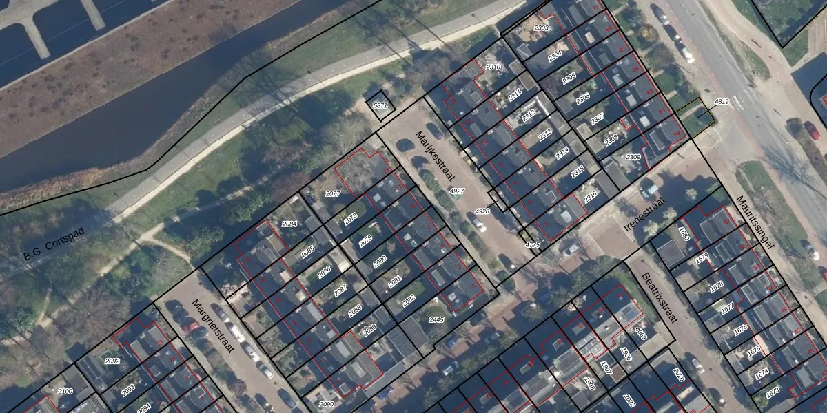 Gebruik de zoekbalk of klik op een perceel voor informatie over de adressen binnen dit perceel.