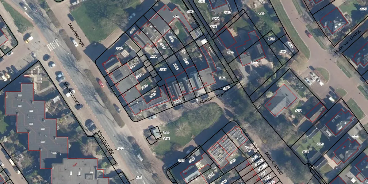 Het perceel waarop Mauritssingel 106 staat heeft een oppervlakte van 165 m². Dit is een middelgroot perceel. De perceeloppervlakte wordt geregistreerd door het Kadaster. Gedetailleerde informatie over de maten van dit perceel kunt u vinden in het rapport Kadastrale kaart met maatvoering van Mauritssingel 106.