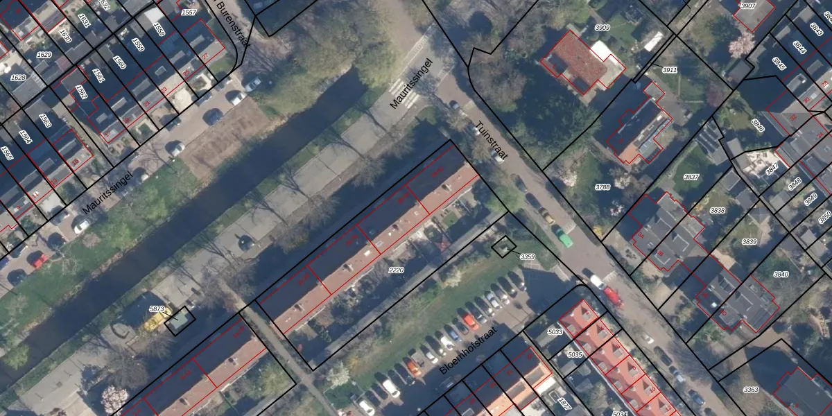 Mauritssingel 44 is gelegen op kadastraal perceel LDD00B2220. Deze kadastrale aanduiding is uniek en wordt gebruikt door het Kadaster om eigendomsrechten en andere zakelijke rechten vast te leggen. Het perceel maakt onderdeel uit van de kadastrale gemeente Leiderdorp.