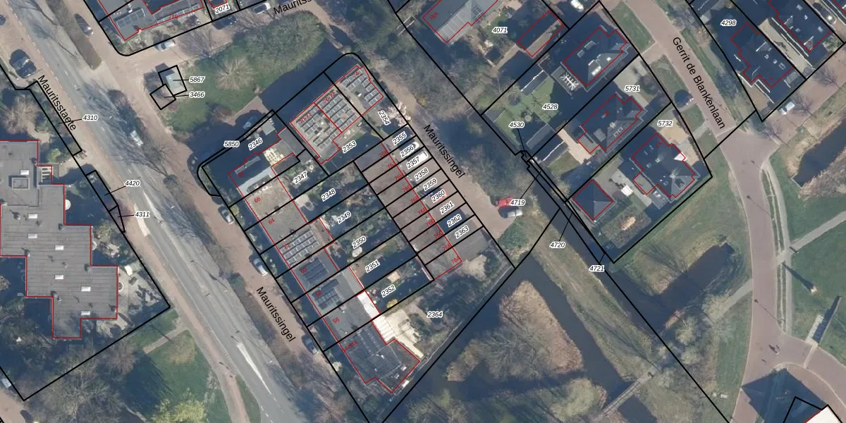 Het perceel waarop Mauritssingel 76-E staat heeft een oppervlakte van 55 m². Dit is een klein perceel. De perceeloppervlakte wordt geregistreerd door het Kadaster. Gedetailleerde informatie over de maten van dit perceel kunt u vinden in het rapport Kadastrale kaart met maatvoering van Mauritssingel 76-E.